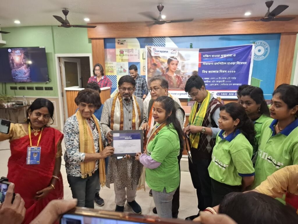 দক্ষিণ হাওড়া মুক্তধারা ও নারায়ণ হাসপাতালের যৌথ প্রয়াস ৪ঠা ফেব্রুয়ারি, ২০২৬, দুপুর ১২:৩০টা থেকে ১:৩০টা পর্যন্ত কলকাতা প্রেস ক্লাবে বিশ্ব ক্যান্সার দিবস উপলক্ষে ক্যান্সার সার্ভিভারদের সম্মান জানাতে একটি অনুষ্ঠানের আয়োজন করা হয়।
